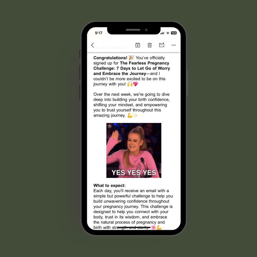 Hey, go check your email - Day 1 of your 7-Day Fearless Pregnancy Challenge is waiting for you over there! ✨